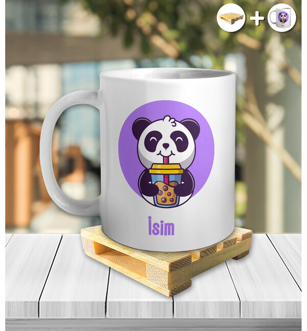 Kişiye Özel İsimli Panda Tasarım Kupa ve Ahşap Palet Altlığı Hediyeli Kupa Bardak oh966
